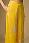 Featuring mango yellow trousers in blended linen base. Accentuate it with a structured blouse or an embroidered crop top, statement earrings, a sleek clutch and elegant heels for a stylish ensemble, ideal for festive gatherings, cocktail evenings or celebratory dinners.