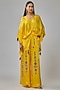 Mango Yellow Blended Satin Mirror Embroidered Trousers