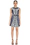Featuring a midnight blue and black bodycon dress in net and lycra base with crystals, sequins, beads, pearls, and mirrors hand embroidery.