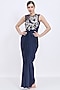 Navy Blue Blended Satin & Polyester Satin Embroidered Draped Gown