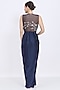 Featuring a navy blue draped gown in blended satin, net and polyester satin base with hand embroidery. Accentuate it with stud earrings and heels for a cocktail, reception or evening party.
