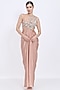 Nude Blended Satin & Polyester Satin Embroidered Draped Gown