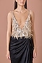 Featuring a nude top in net base with hand embroidery and feather fringe detailing. Accentuate it with a skirt, dangler earrings and heels for cocktail parties.