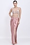 Featuring an old rose draped skirt in milano satin base. Accentuate it with a blouse, diamond earrings and heels for a cocktail, sangeet or engagement ceremony.