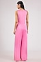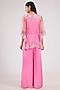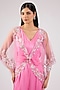 Featuring a pink kaftan in net base. It is paired with a blended satin jumpsuit. Style it with a statement earrings and heels for a cocktail or evening wear.