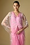 Featuring a pink jumpsuit in foil and lycra base. It is paired with a net shaded kaftan. Accentuate it with statement chandelier earrings, a sleek clutch, and strappy heels for a stylish ensemble, ideal for cocktail evenings, festive celebrations, or destination parties.