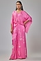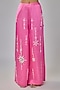Featuring pop pink trousers in blended satin base. Accentuate it with a kaftan, dangler earrings and mules for festive gatherings or pooja ceremony.