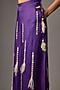 Featuring purple trousers in blended linen base with linear sequin and feather wisps. Accentuate it with a top, statement earrings and heels for evening wear, festive or cocktail parties.