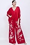 Red Blended Linen Chrysanthemum Machine Embroidered Trousers