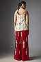 Featuring red trousers in blended linen base with embroidery. Team with a top and stilettos, great for parties or evening outings.