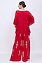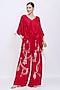 Featuring red trousers in blended linen base with diamond-pearl, latka detail and hand embroidery. Accentuate it with a top or kaftan, dangler earrings and flats for a festive occasion or family gathering.