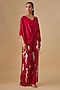 Featuring red trousers in blended linen base. Team with a sequin top and stilettos, great for parties or evening outings.