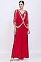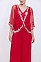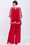 Featuring a red kaftan in net base with hand embroidery. It is paired with a blended satin jumpsuit. Accentuate it with dangler earrings and heels for a festive occasion, pooja ceremony or family gathering look.