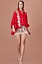 Featuring a red batwing shirt in cotton base with zig-zag sequins and feather hand embroidery. Accentuate with dangler earrings and heels for an evening look.