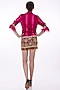 Featuring a ruby pink tie and dye shirt in blended satin base with embellished collar and feather cuff detailing. Style it with a skirt or pants for an evening look.