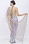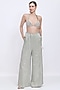 Featuring a sage bikini in net and polyester satin base with silver latkan detail and hand embroidery. Accentuate it with pants, diamond earrings and flated for a complete look.