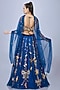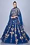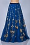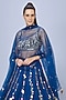 Featuring a sapphire blue kalidar lehenga in net and polyester satin base with embroidery. Accentuate it with statement earrings and heels for a festive occasion.