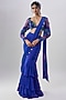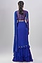 Blue Viscose Georgette Hand Embroidered Pre-Draped Skirt Saree Set