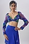 Featuring a blue pre-draped layered skirt saree in viscose georgette base. It is paired with a net blouse having hand embroidery. Accentuate it with dainty shoulder-grazing earrings or pastel stone studs and carry a minimal clutch to keep the look refined, ideal for festive celebrations, daytime weddings or elegant family functions.