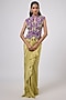 Featuring a green vest in dupion silk base with floral hand embroidery. It is paired with a crepe draped skirt. Accentuate it with statement gold earrings or a bold choker to enhance its opulent corset detailing. Ideal for weddings, sangeet nights or grand festive gatherings.