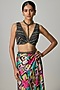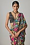 Featuring a multi-colored ruffled saree in crepe satin base with print. It is paired with a blouse. Accentuate it with zircon dangler earrings, a clutch and block heels for festive occasion, sangeet or cocktail ceremony.
