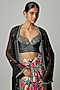 Featuring a black cape in georgette base. It is paired with a multi-colored satin kurta and a skirt. Accentuate it with zircon dangler earrings, a clutch and block heels for festive gatherings, brunches, or a casual day out.