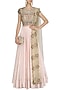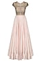 Featuring a pink flared kalidaar gown in dupion silk blend base with floral embroidery on the front and back along with sheer net detailing around the waist.