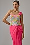 Featuring a pink draped saree in net and lycra base. It is paired with a hand-embroidered corset. Accentuate it with dangler earrings and heels for a festive occasion or wedding ceremony.