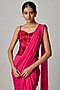 Featuring a pinkish red draped saree in net base. It is paired with a corset having sequins and thread work. Accentuate it with zircon dangler earrings, a clutch and block heels for sangeet, engagement or cocktail ceremony.