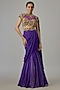 Purple Georgette Hand Embroidered Draped Skirt Saree Set