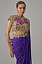 Featuring a purple draped skirt saree in net and georgette base with gold hand embroidery. It is paired with a blouse and a belt. Accentuate it with dangler earrings and heels for a festive occasion or wedding ceremony.