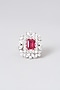 Featuring a white rhodium finish emerald-cut ring studded with red swarovski zirconia, set in 92.5 sterling silver.