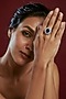 Featuring a white finish ring studded with blue and white swarovski, set in 92.5 sterling silver. Perfect wear for cocktail parties.