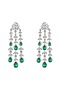 Featuring a pair of white finish chandelier earrings studded with man-made emerald green stone and swarovski zirconia, set in 92.5 sterling silver. Perfect for a night of cocktails or daytime celebrations.