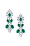 White Finish Emerald Stone & Swarovski Zirconia Chandelier Earrings In Sterling Silver