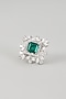 White Finish Emerald Synthetic Stone & Swarovski Zircon Ring In Sterling Silver