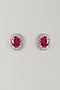 White Finish Red Stone Stud Earrings In Sterling Silver