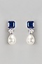Featuring a pair of white finish dangler earrings studded with swarovski, pearl and synthetic blue stones, set in 92.5 sterling silver. Perfect wear for cocktail parties.