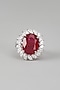White Finish Swarovski Zircon & Red Synthetic Stone Ring In Sterling Silver