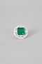 White Finish Zircon & Emerald Ring In Sterling Silver