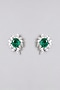 White Finish Zircon & Emerald Stud Earrings In Sterling Silver
