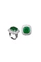 White Rhodium Finish Green Swarovski Zirconia Ring In Sterling Silver