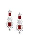 Featuring a pair of white rhodium finish dangler earrings studded with ruby stones and swarovski zirconia, set in 92.5 sterling silver. Perfect choice for festive celebrations, evening or cocktail parties.