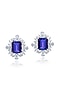 White Rhodium Finish Sapphire Stone & Swarovski Zirconia Stud Earrings In Sterling Silver