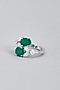 White Finish Green Synthetic Stones & Swarovski Ring In Sterling Silver