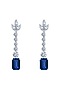 Featuring a pair of white finish stud earrings studded with blue synthetic stones and swarovski zirconia, set in 92.5 sterling silver.