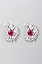 Featuring a pair of white rhodium finish earrings studded with swarovski zirconia and pink synthetic stone, set in 92.5 sterling silver.