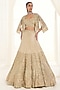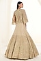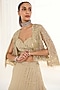 Featuring a green lehenga in georgette base with cutdana and nakshi work. It is paired with a blouse and a net jacket. Style it with statement earrings, soft curls and block heels, perfect for weddings or mehendi ceremonies.