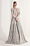 Featuring a grey jacket in georgette base with pearls, cutdana and sequins embellishments. It is paired with a busier and a lehenga. Style it with statement earrings, soft curls and block heels, perfect for weddings or sangeet ceremonies.