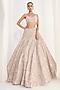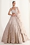 Featuring a grey lehenga in georgette base with cutdana, sequins and tush embellishments. It is paired with a blouse, net dupatta and potli. Style it with zircon jewellery, soft curls and block heels, perfect for weddings, reception or sangeet ceremonies.